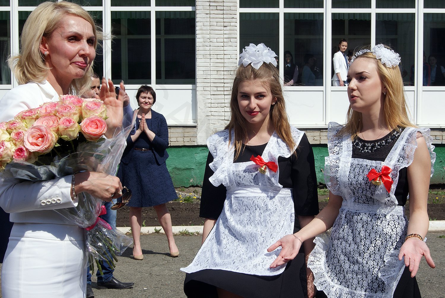 Во время последнего звонка выпускники вспомнили своих первых учителей, поблагодарили преподавателей-предметников, классных руководителей и всех тех, кто обеспечивал беззаботную и комфортную школьную жизнь – библиотекарей, поваров столовой, технических и медицинских работников, вахтеров и другой персонал школы.