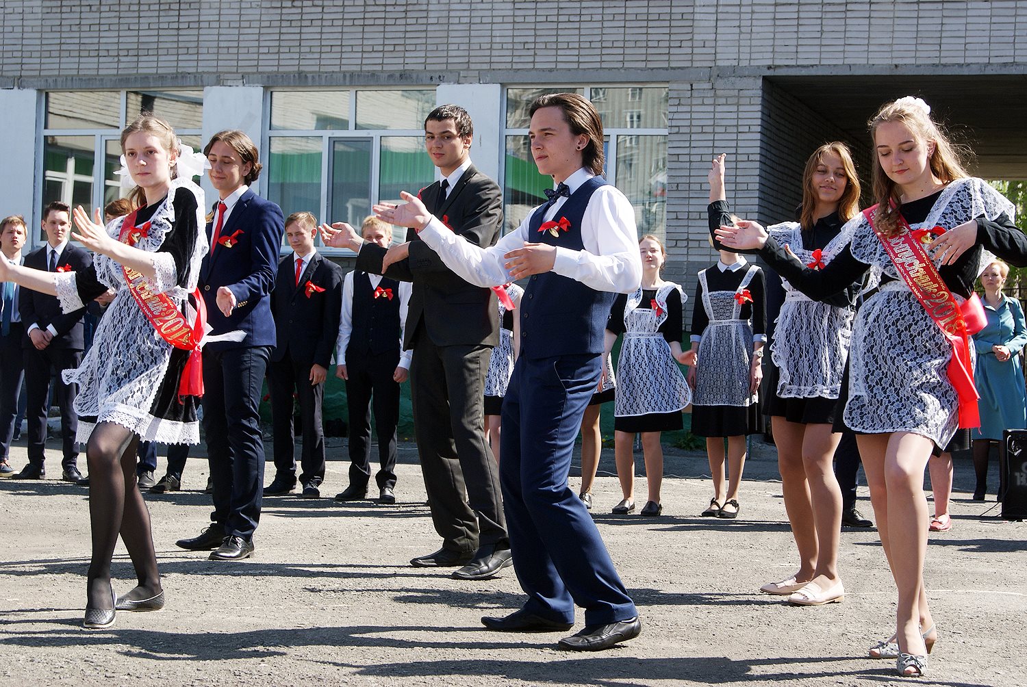 Прекрасным завершением праздника стали вальс и флешмоб в исполнении выпускников. После торжественной части состоялась церемония закладки Аллеи выпускников на территории школы. Вместе с учениками саженцы рябины высадили и учителя.
