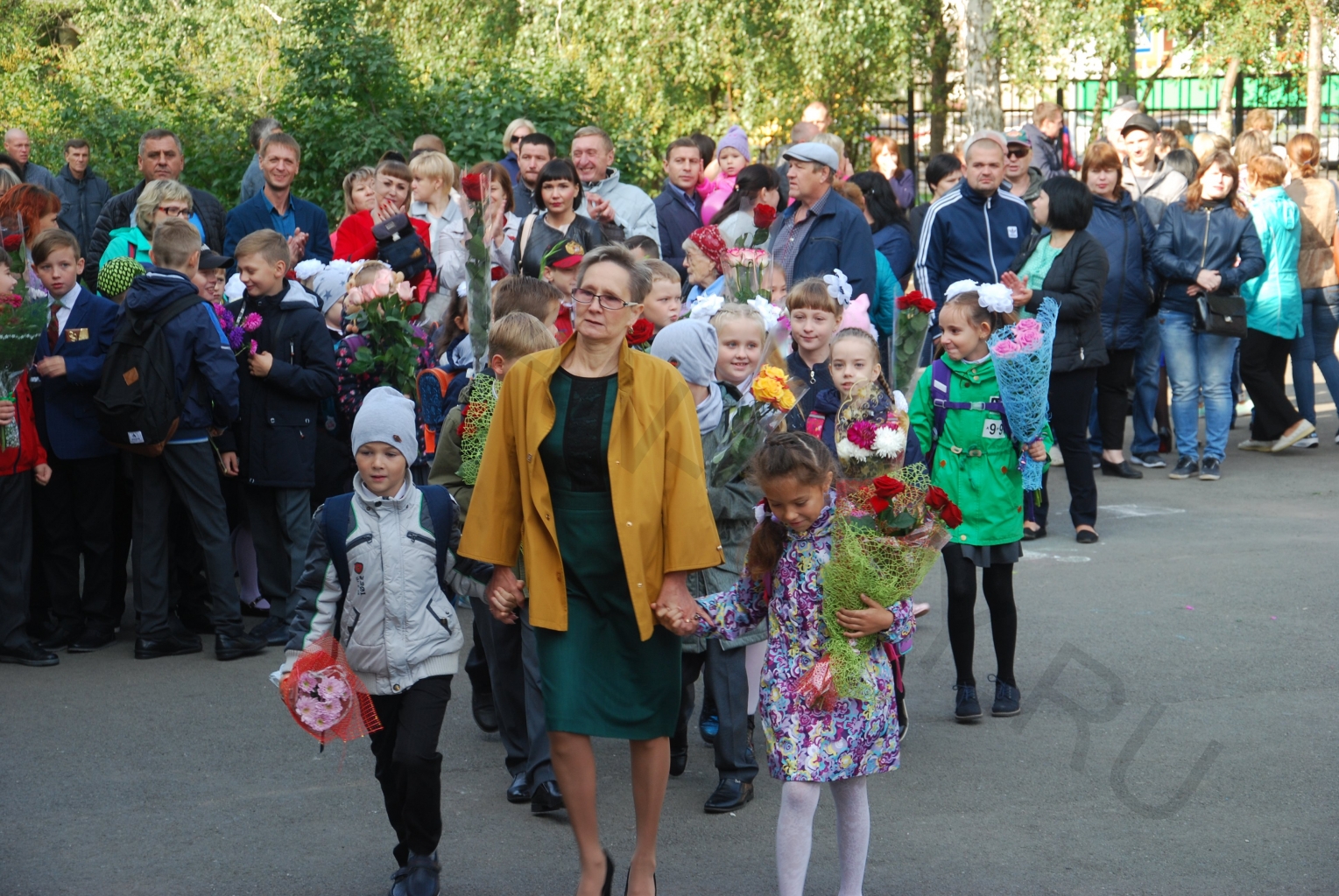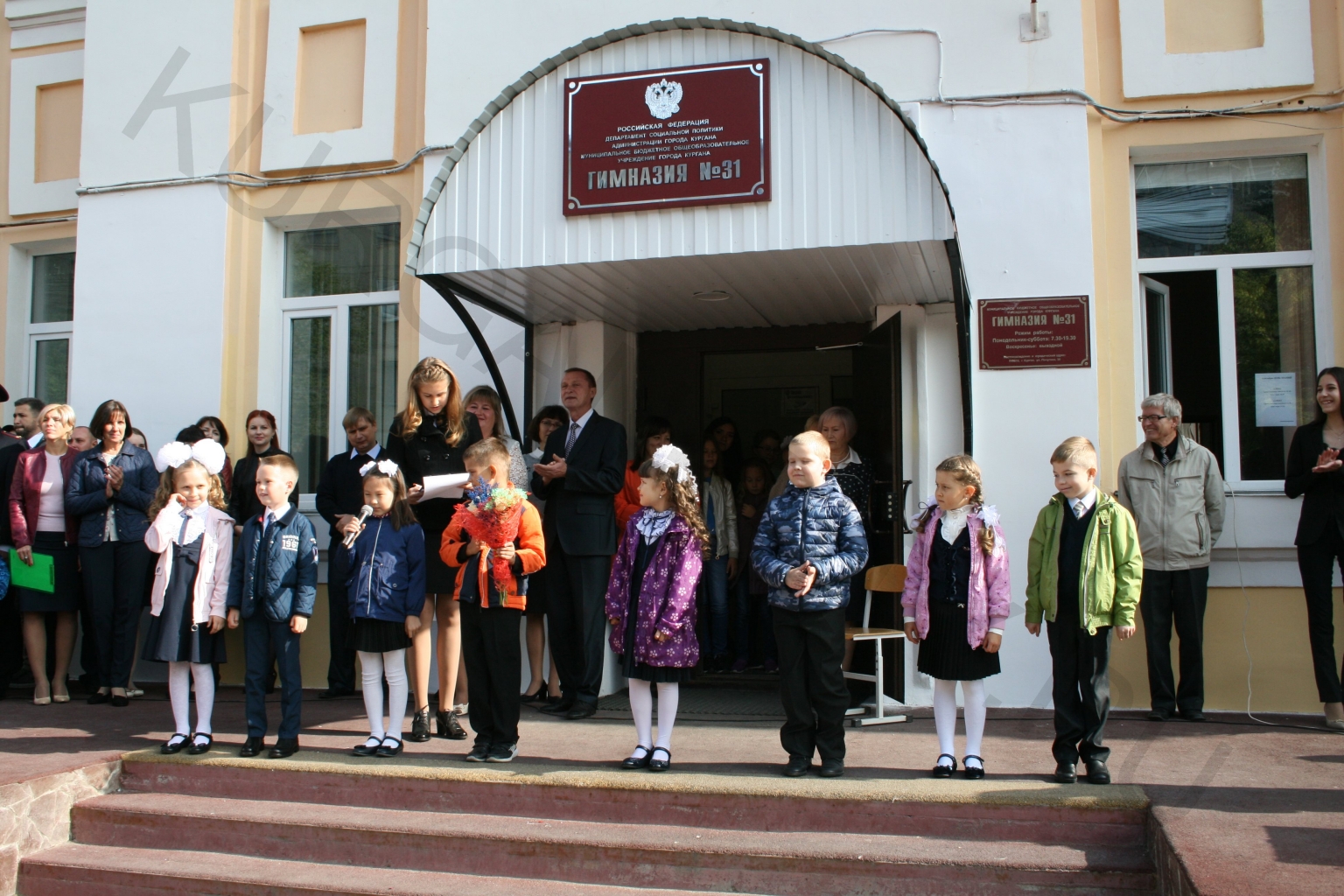 Ярко, с «изюминкой», прошли линейки и в других общеобразовательных учреждениях Кургана. Практически на всех из них побывали почетные гости - депутаты Курганской городской Думы, специалисты и руководители Администрации города. Они поздравили преподавателей и учеников с началом нового учебного года, пожелали учителям вдохновения, творчества, ученикам - удачи и упорства в освоении новых предметов. НА всех торжественных линейках по общепринятой традиции звенел для кого-то первый, а для кого-то последний звонок. Ученики выпускного класса пронесли на плечах первоклассников, которым выпала честь дать первый в этом году звонок, звоня в настоящий колокольчик.