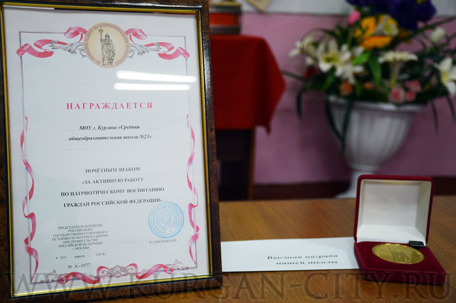 Школа по праву также может гордиться своими победами. К примеру, в 2008 году учебное заведение награждено Почетным знаком «За активную работу по патриотическому воспитанию граждан Российской Федерации». Также школе присвоен статус «Социально активное учреждение города Кургана и Курганской области».