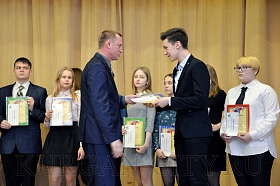 Со словами приветствия к учащимся обратился Илья Назаренко. Он поздравил победителей и призеров и отметил, что хотелось бы, чтобы их знания пригодились на благо развития нашего города. Умников и умниц поздравил также Игорь Постовалов, подчеркнув, что результаты ребят – это повод гордиться нашим городом и системой курганского образования.