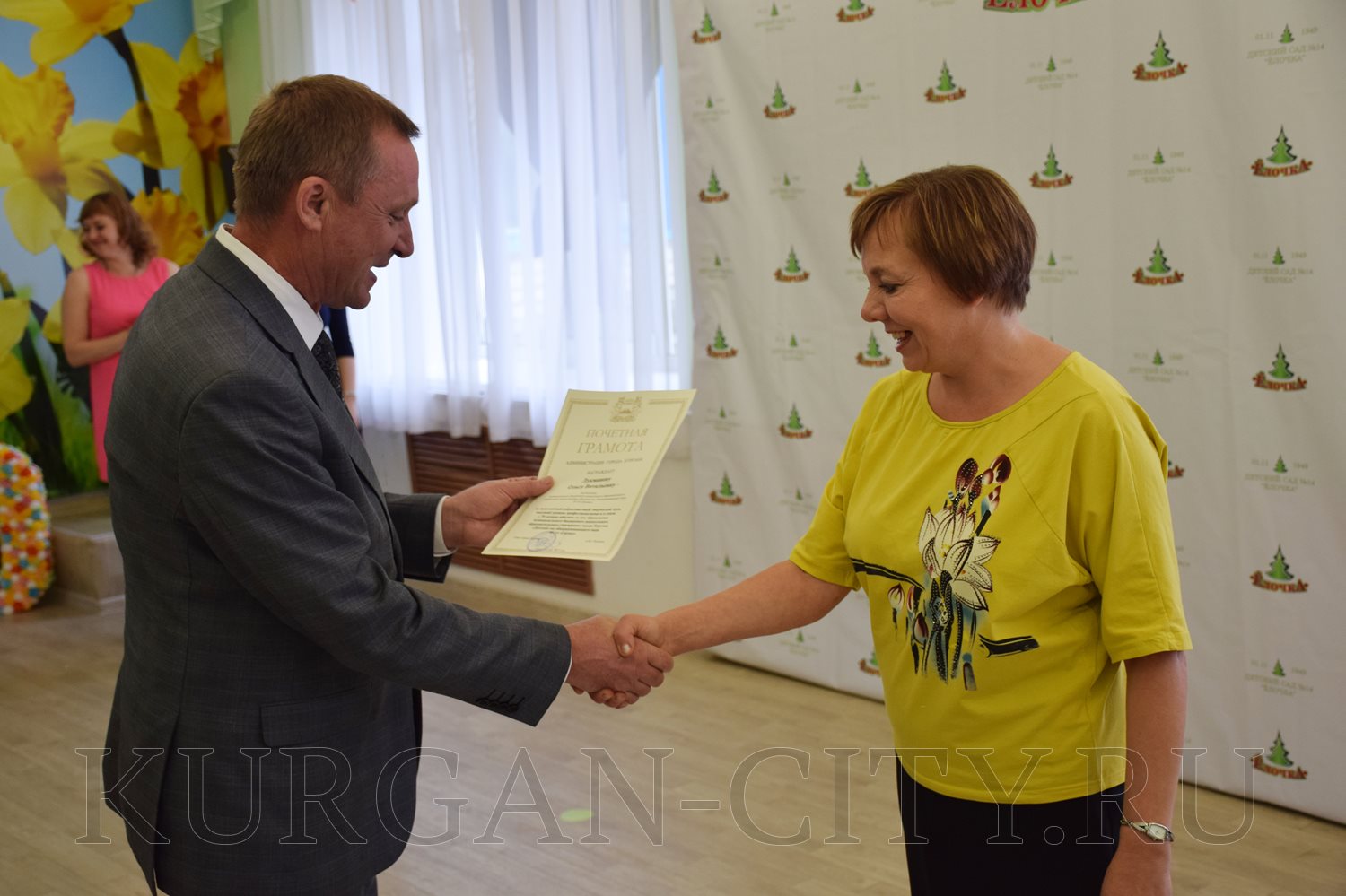 Педагогам детского сада Игорь Постовалов выразил слова благодарности за профессионализм, слаженную и ответственную работу по воспитанию подрастающего поколения, а также пожелал творческих успехов, хорошего настроения. Сотрудники учреждения были отмечены Почетными грамотами и Благодарственными письмами Администрации города и Департамента социальной политики, а также наградами регионального Департамента образования и науки.