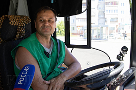 Водитель Евгений Добрецов управляет пассажирским общественным транспортом на протяжении 20-ти лет. Рассказал, что раньше работал на «ПАЗиках». Новые КАВЗы гораздо удобнее и просторнее: «Больше пассажиров помещается в салоне. Коробка-автомат делает автобус хорошо управляемым».