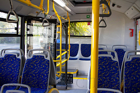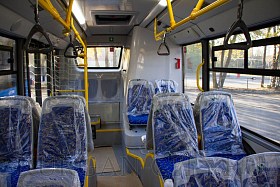 Благодаря кондиционеру, летом в новом автобусе будет нежарко. Еще одно преимущество новых автобусов – это низкий пол. В него удобно заходить и пожилым людям, и инвалидам, и мамам с колясками. Автобус наклоняется, для въезда колясок оборудован специальный подъём.