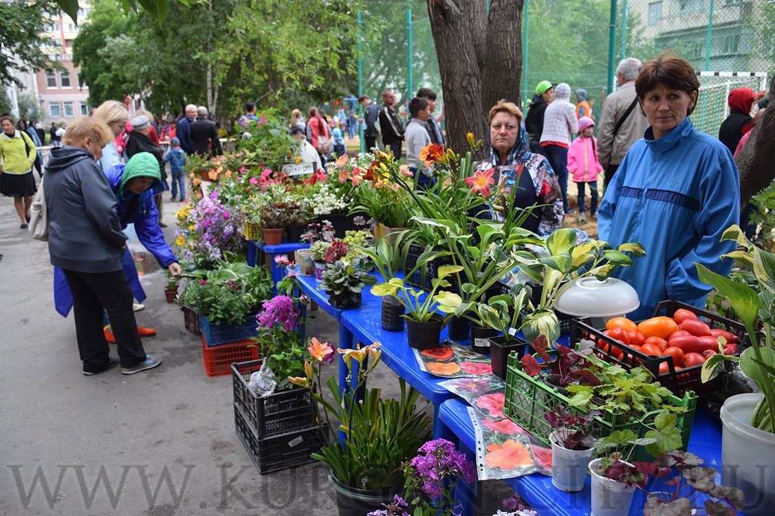 Территорию двора своим многообразием украсила выставка-продажа цветов и садовых культур.