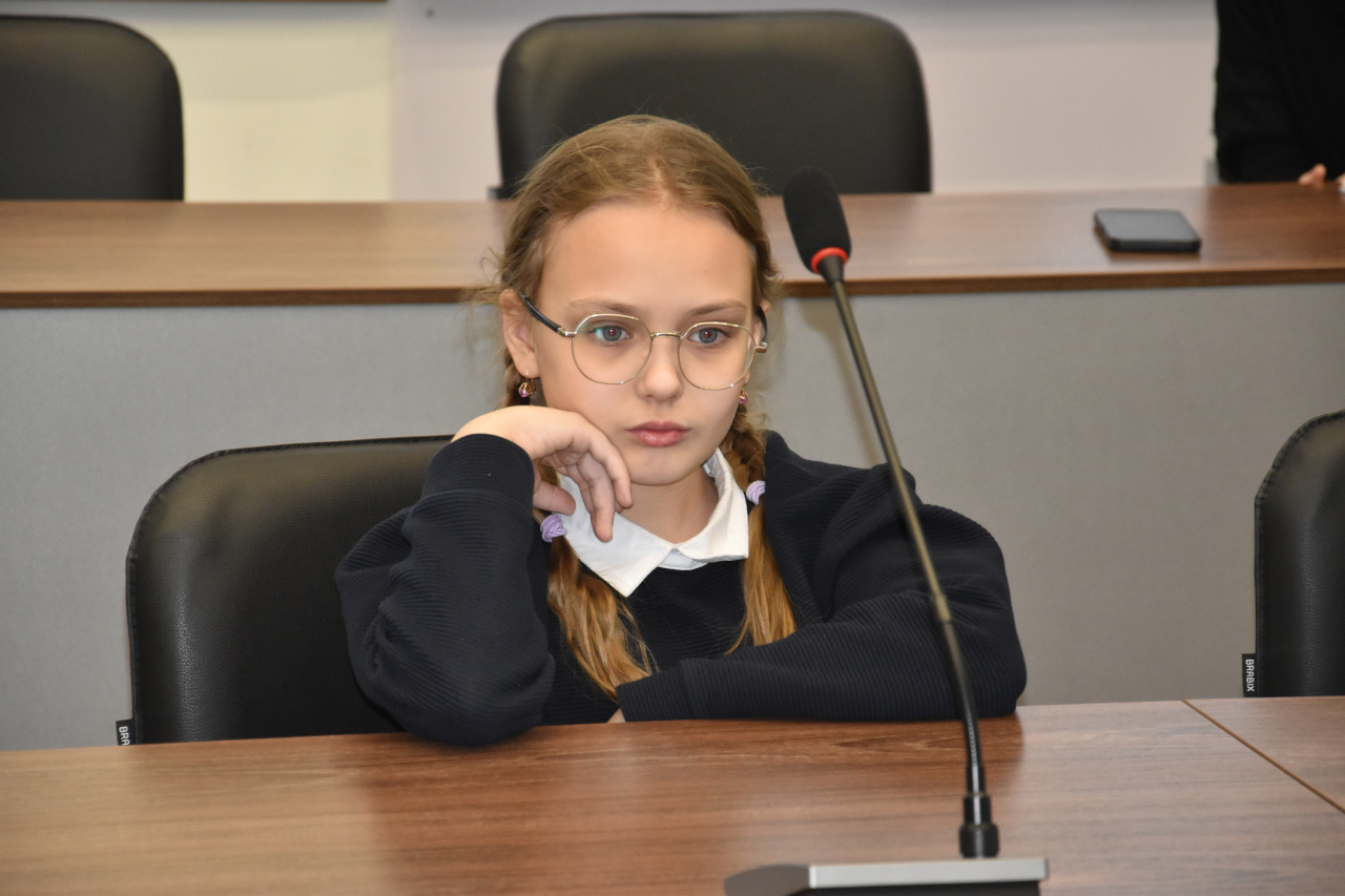 Встреча в форме диалога состоялась в зале, где проходят заседания городской Думы. Дети разместились на местах депутатов и каждый смог представить себя в роли народного избранника. Ребятишкам разрешили сделать фотографию на депутатском месте и поговорить в микрофон.