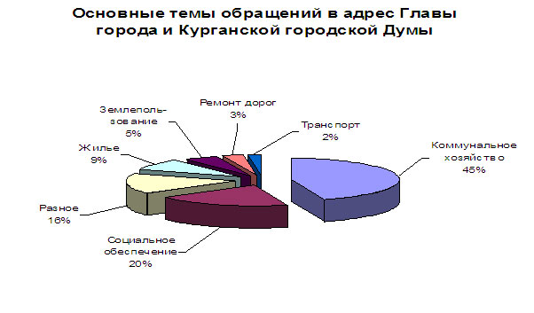 Основными темами обращений в адрес Главы города и Курганской городской Думы являлись (диаграмма 1):