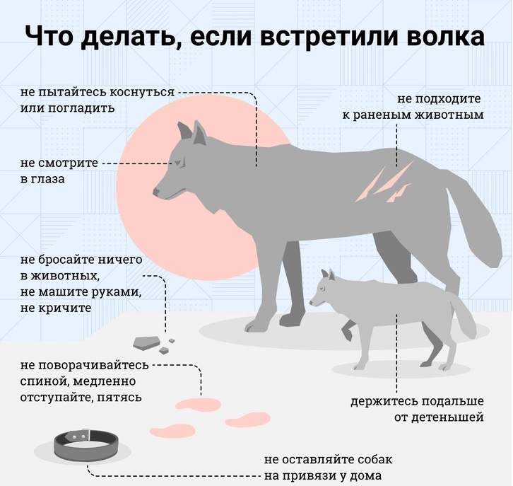 - Уходите, если удалось избежать схватки. Бежать не нужно — волк может наблюдать за потенциальной жертвой и выжидать идеальный момент для нападения.